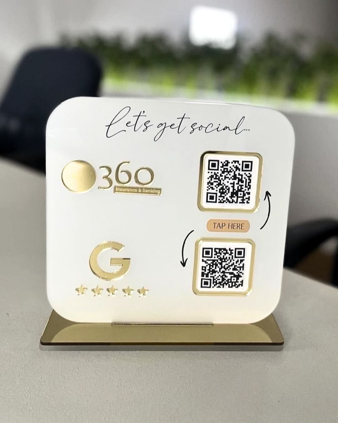 Αυτό το στιβαρό και εντυπωσιακό stand προσφέρει κορυφαία ποιότητα και καινοτόμο τεχνολογία NFC, επιτρέποντας στους πελάτες σας να αφήνουν κριτικές και να συνδέονται με τα κοινωνικά σας δίκτυα με ευκολία.